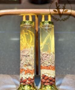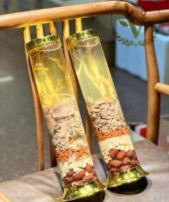 BÌNH RƯỢU RƯỢU NHUNG HƯƠU TƯƠI THÁI LÁT THƯỢNG HẠNG Thể tích bình: 1.8 L Thành phần: 100g nhung hươu thái lát được ngâm cùng 2l rượu nếp đã khử andehit và hạ thổ 1 năm, cùng một số vị thuốc bắc để tăng thêm hương vị. Có mùi vị đặc trưng của nhung hươu, thơm ngon, tinh tuý. Có thể thay rượu 3 đến 4 lần sau khi sử dụng hết. Ngoài là một thức uống từ đặc sản truyền thống của Hương Sơn Hà Tĩnh. Rượu Nhung Hươu còn có những tác dụng tốt cho cơ thể của người sử dụng đó là: – Tăng cường sinh lực, làm chậm quá trình lão hóa của cơ thể. – Giúp ăn ngon, ngủ ngon, tiêu hoá tốt. – Cải thiện chức năng sinh lý, bổ thận tráng dương, tăng cường sinh lực, đặc biệt cho nam giới. Chịu trách nhiệm chất lượng sản phẩm, sản xuất và phân phối độc quyền bởi Công Ty Cổ Phần Sản Xuất và Thương Mại Nhung Hươu Việt