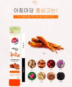 Hồng sâm 6 năm tuổi, linh chi, hoàng kỳ, kỷ tử, táo đỏ, chà là, bạch chỉ, mật ong,… cùng các thành phần khác có tác dụng bồi bổ sức khỏe và giảm mệt mỏi.