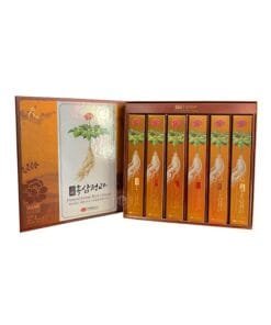 Thành phần Được sản xuất hoàn toàn từ tinh chất Hắc sâm của đúng chuẩn 6 năm tuổi Hàn Quốc, kết hợp với đông trùng hạ thảo thượng hạng Hàn Quốc, cùng nhiều loại thảo dược thiên nhiên vô cùng quý giá. Giúp phòng ngừa và hỗ trợ điều trị nhiều chứng bệnh nguy hiểm. – Được làm từ Hồng Sâm 6 tuổi trồng ở khu vực không bị ô nhiễm trong điều kiện canh tác Hồng Sâm tối ưu (đất sạch, 4 mùa riêng biệt), với hệ thống kiểm soát chất lượng nghiêm ngặt, thu hoạch thủ công. Công dụng – Cải thiện sức khỏe, tăng cường sức đề kháng cho cơ thể. – Rất có lợi cho sức khỏe người cao tuổi, cải thiện các bệnh tuổi già như tiểu đường, huyết áp, mỡ máu, đồng thời tác động lên toàn bộ cơ quan của cơ thể. – Giúp an thần, giảm stress, giảm căng thẳng, mệt mỏi và thư giản đầu óc, giúp cải thiện giấc ngủ cho bạn giấc ngủ sâu và ngon hơn, từ đó cải thiện được chất lượng công việc. – Giúp ổn định huyết áp, cải thiện sức khỏe tim mạch, hỗ trợ hệ tuần hoàn hoạt động ổn định, kích thích tăng cường sản sinh hồng cầu ở tủy giúp ngăn ngừa xơ vữa động mặc, giảm cholesterol ngăn ngừa nguy cơ tiểu đường. Đối tượng sử dụng – Sản phẩm phù hợp với mọi độ tuổi, giới tính của người tiêu dùng. – Sản phẩm đặc biệt phù hợp cho người bị suy nhược sức khỏe. Người đang trong quá trình dưỡng bệnh. Người cao tuổi. Người làm việc thường xuyên về đêm. Hướng dẫn sử dụng Ngày uống 3 lần. Mỗi lần 1 thìa (đi kèm với sản phẩm). Pha với 80ml nước ấm. Thông Tin Sản Phẩm Thương hiệu: Achimmadang Quy cách: 500gr x 2 lọ Xuất xứ: Hàn Quốc