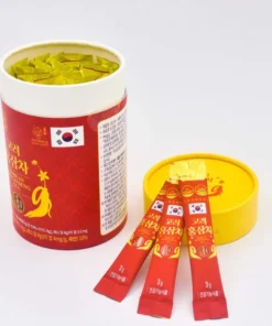 Thành phần – Được làm từ Hồng Sâm 6 tuổi trồng ở khu vực không bị ô nhiễm trong điều kiện canh tác Hồng Sâm tối ưu (đất sạch, 4 mùa riêng biệt), với hệ thống kiểm soát chất lượng nghiêm ngặt, thu hoạch thủ công, hấp và sấy khô dưới 14% hàm lượng nước. Hồng sâm cô đặc (Ginsenoside Rg1, Rb1 và Rg3 tổng 4mg / g, hàm lượng rắn 60% trở lên, nội địa) chiếm 10%, glucose tinh thể khan, vitamin C. Tỷ lệ phối trộn nhân sâm: hồng sâm (70% củ hồng sâm, 30% rễ sâm) Công dụng – Cải thiện sức khỏe, tăng cường sức đề kháng cho cơ thể. – Rất có lợi cho sức khỏe người cao tuổi, cải thiện các bệnh tuổi già như tiểu đường, huyết áp, mỡ máu, đồng thời tác động lên toàn bộ cơ quan của cơ thể. – Giúp an thần, giảm stress, giảm căng thẳng, mệt mỏi và thư giản đầu óc, giúp cải thiện giấc ngủ cho bạn giấc ngủ sâu và ngon hơn, từ đó cải thiện được chất lượng công việc. – Giúp ổn định huyết áp, cải thiện sức khỏe tim mạch, hỗ trợ hệ tuần hoàn hoạt động ổn định, kích thích tăng cường sản sinh hồng cầu ở tủy giúp ngăn ngừa xơ vữa động mặc, giảm cholesterol ngăn ngừa nguy cơ tiểu đường. Đối tượng sử dụng – Người thường xuyên thức khuya, nhiều áp lực công việc – Người phải thường xuyên tiếp xúc với môi trường độc hại hoặc thường xuyên thay đổi môi trường làm việc, tăng sức để kháng Hướng dẫn sử dụng – Sử dụng 3 lần/ ngày. Mỗi lần uống 1 gói có thể pha với nước ấm hoặc lạnh đều được. – Bạn có thể cho thêm đường hoặt mật ong để phù hợp với khẩu vị hơn. Lưu ý: Phụ nữ đang mang thai, cho con bú, trẻ em không nên sử dụng. Bảo quản: Bảo quản nơi thoáng mát, tránh ánh nắng mặt trời, tránh những nơi có độ ẩm cao Thông Tin Sản Phẩm Thương hiệu: Daedong Korea Ginseng Co., Ltd Quy cách: (3gr x 30 gói) Xuất xứ: Hàn Quốc Cách bảo quản: Nơi khô ráo, thoáng mát, tránh ánh nắng trực tiếp